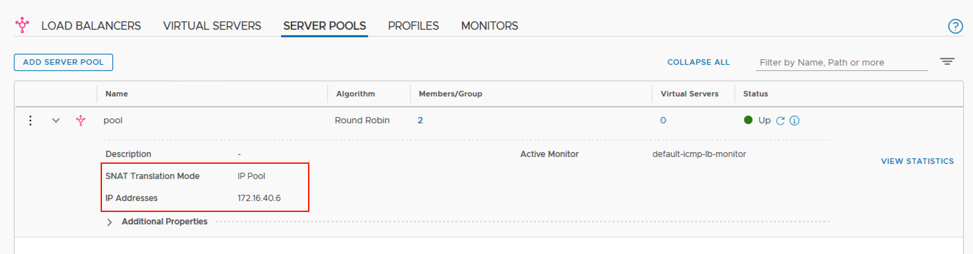 Please note that SNAT configuration has been applied while creating the server pool and the SNAT IP has been kept as the virtual server IP 172.16.40.6